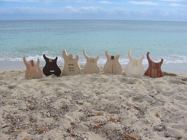 Wir machen uns so langsam fertig für den Rückweg, da passiert's: Mein zuallerliebst geshaped und geschliffener Korpus steht zum Trocknen hochkant im Sand und fällt vornüber auf seinen Bauch, mitten auf ein paar Steine. Ganz, ganz blöde Scheiße! 4 dicke Macken im Korpus! Doch Ekki beruhigt mich: "Das kriegen wir rausgebügelt!" Hm, rausbügeln? Ekki erklärt's mir anschließend. Aha, mal sehen, ob das klappt!
