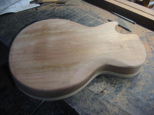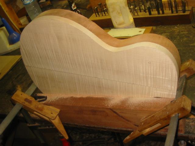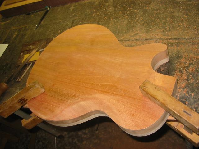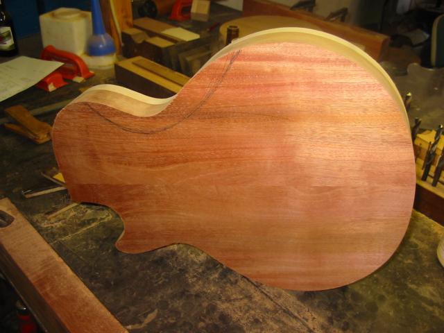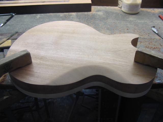 Wir alle sägen die inzwischen gut verleimten Bodies auf der Bandsäge aus und verbringen die folgenden Jahre - äh Stunden mit dem raspeln und schleifen der Zargen. Am Bauch soll es auch nicht zwicken und so wird hinterrücks das Shape für die Wampe bearbeitet.