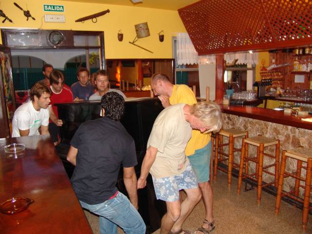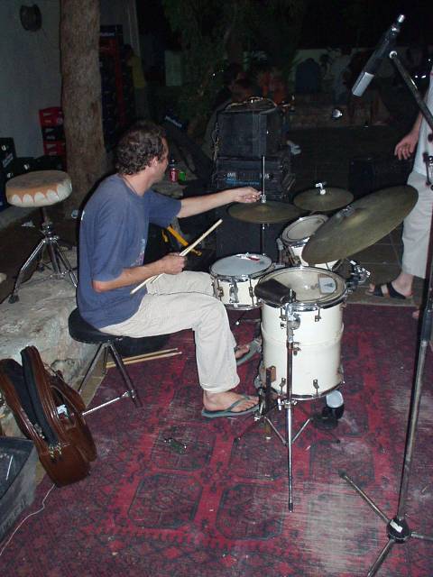 Kurz drauf spielen wir in wechselnden Besetzungen. Tomasito und Jürgen aka "Womanizer Manfred" aka "Best Cock in the Basket 2005", unser gitarrespielender Drummer (alles klar jetzt? Grüß Dich, Jürgli!) wechseln sich am Drumkit ab. Um kurz vor Mitternacht ist Schluß.