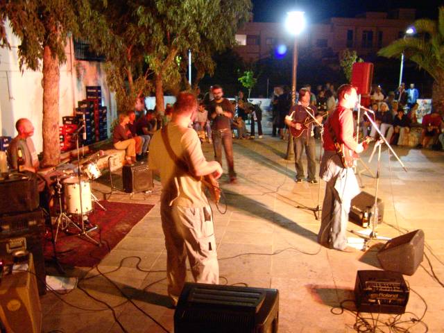 Danach unterbrechen wir alle die Arbeiten. Die Mantas, die eigentlich heute Abend auf der Plaza spielen sollen, fallen aus, da der Sänger Zahnschmerzen hat. Wir sollen einspringen und setzen uns zusammen, stimmen die Songs und das Set ab. Nick und Ralf machen auch mit. Kurze Probe, kurzes anspielen der Nummern. Als alles klar ist, wer was wie spielt, gehen wir alle 'ne Runde duschen bevor wir uns wieder um sieben in der Werkstatt treffen.